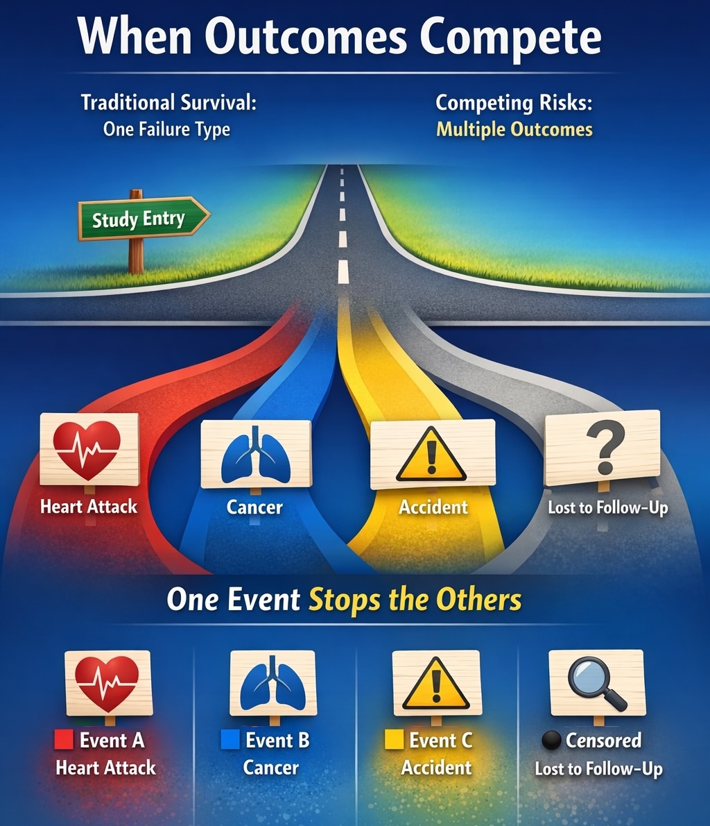 For students: This area is appealing for students who want to build rigorous statistical models with real clinical and public health impact. You will learn how to quantify cause-specific risks and translate complex survival data into meaningful insights for medical decision-making and risk assessment.