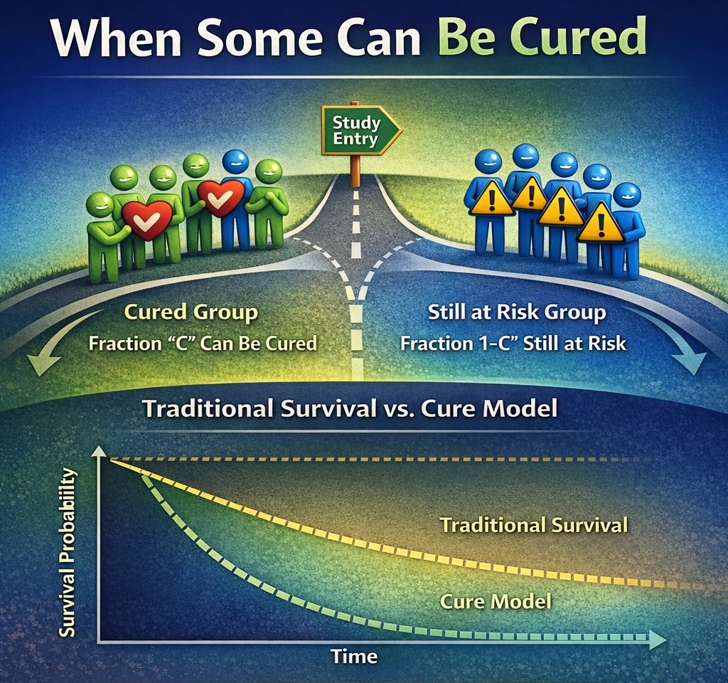For students: This area is appealing for students interested in developing realistic survival models that reflect long-term protection and resilience. You will blend statistical theory and applied modeling to identify who remains at risk and who may never experience the event, with applications in biomedicine, mental health, and behavioral science.